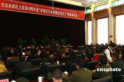 3月20日,紀(jì)念西藏民主改革50周年暨“西藏百萬(wàn)農(nóng)奴解放紀(jì)念日”理論研討會(huì)在拉薩召開,西藏自治區(qū)人大常委會(huì)主任列確出席會(huì)議。中新社發(fā) 杜洋 攝