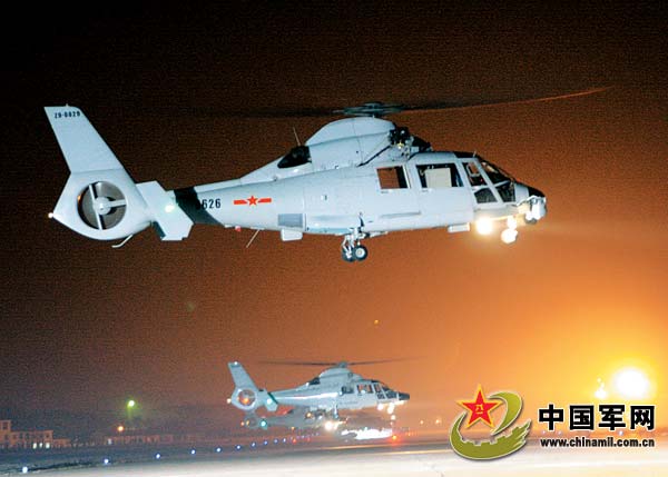 3月19日凌晨2時(shí)49分,隨著數(shù)架艦載直升機(jī)飛向夜空,拉開了海軍某艦載機(jī)部隊(duì)2009年首次跨晝夜飛行訓(xùn)練的序幕。在歷時(shí)6個(gè)多小時(shí)的訓(xùn)練中,直升機(jī)先后進(jìn)行了夜間海上超低空飛行、海上懸停等高難度課目訓(xùn)練。鄢潤波攝