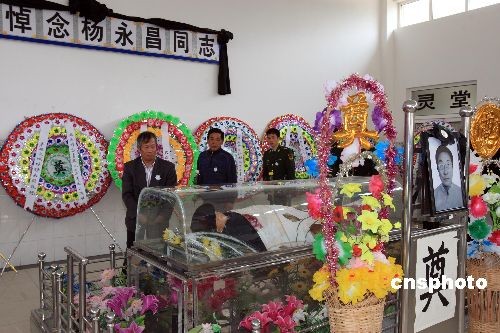4月22日,“雪龍?zhí)枴睒O地科考船失事直升機(jī)失蹤機(jī)組人員楊永昌追悼會(huì)在上海長(zhǎng)興島殯儀館舉行,與楊永昌生前一同到極地從事科考的隊(duì)友專程為楊永昌送行。4月12日,“雪龍?zhí)枴睒O地科考船租用的艦載直升機(jī)在完成科考任務(wù)后返回駐地時(shí)失事墜海。4名機(jī)組人員隨機(jī)落水,其中3人獲救。4月20日,經(jīng)過(guò)近8天的搜尋,失蹤機(jī)組人員楊永昌的遺體在長(zhǎng)江口水域振華港機(jī)0號(hào)碼頭附近被發(fā)現(xiàn)并打撈上岸。中新社發(fā) 潘索菲 攝