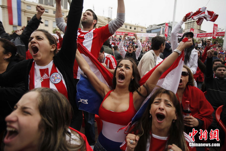 6月29日,巴拉圭點球大戰(zhàn)5-3擊敗日本。著名乳神女球迷拉里薩再度胸夾手機亮相,并與日本球迷同樂,瘋狂慶祝盡顯激情狂野。