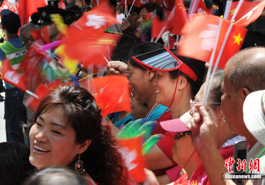 7月1日,香港特別行政區(qū)在金紫荊廣場隆重舉行升旗儀式﹐慶祝香港特別行政區(qū)成立十三周年。中新社發(fā) 鄭祚聲 攝