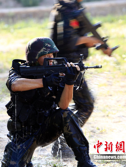 7月5日,中巴兩軍特戰(zhàn)士兵展開高強度魔鬼訓練。此次代號為“友誼—2010”的中國巴基斯坦反恐聯(lián)合訓練在中國寧夏青銅峽地區(qū)展開,訓練主要以邊境地區(qū)山地聯(lián)合反恐作戰(zhàn)為課題,分為展示交流、混編同訓、綜合演練三個階段。 中新社發(fā) 杜洋 攝