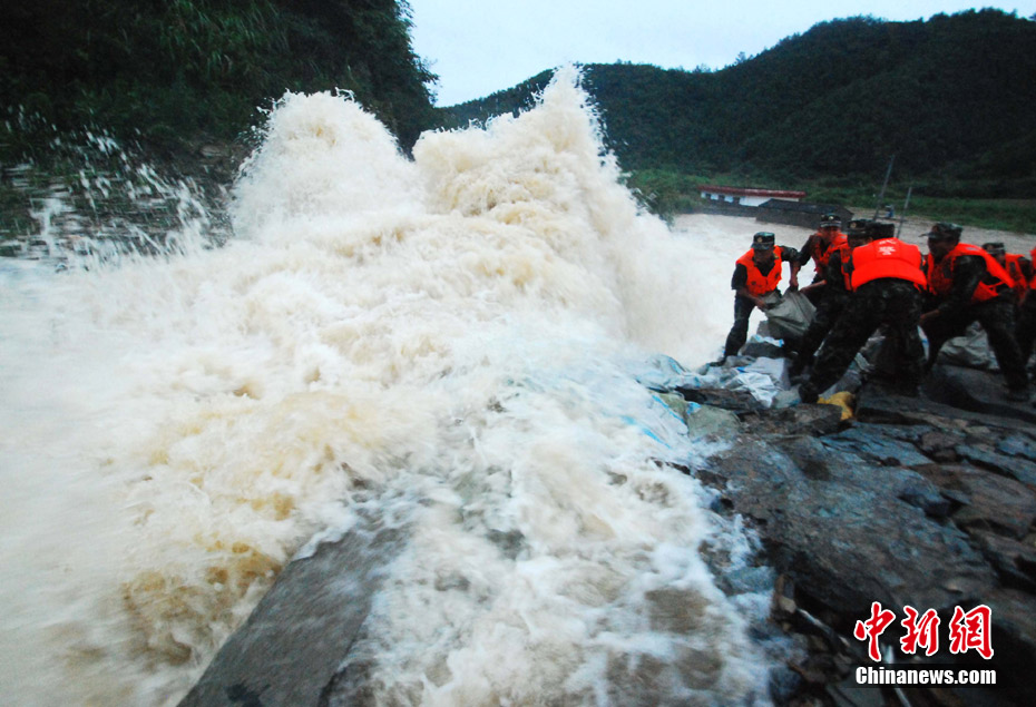 中新網(wǎng)都昌7月14日電(胡國林)14日,受強(qiáng)降雨襲擊,江西九江市都昌大港鎮(zhèn)梅溪水庫水位超過泄洪道1米左右,啟閉設(shè)備出現(xiàn)失靈,洪水如猛獸般狂瀉入下,部分村莊和數(shù)千畝農(nóng)田被淹。 險情發(fā)生后,當(dāng)?shù)胤姥床块T立即組織抗洪搶險突擊隊,武警官兵和當(dāng)?shù)厝罕娒爸kU,拋石加固堤壩,防止洪庫潰堤,下游數(shù)千名村民已被安全轉(zhuǎn)移。
