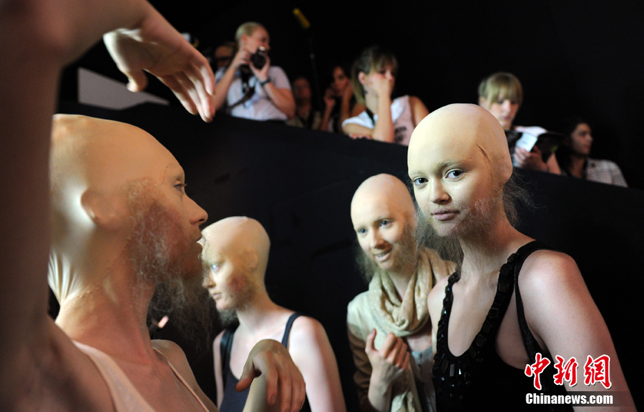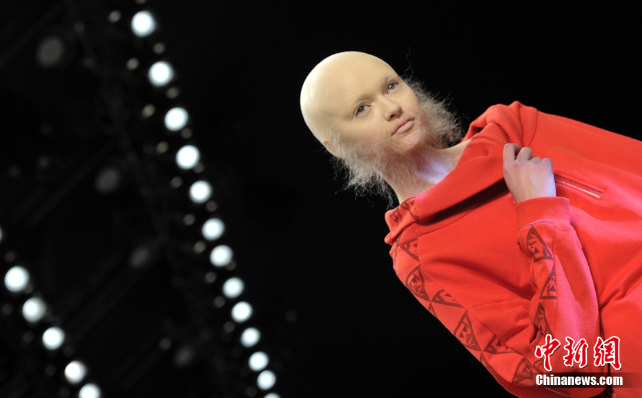 時(shí)尚可以美到讓人窒息,也可以雷人到讓人無(wú)語(yǔ)……柏林時(shí)裝周上,設(shè)計(jì)師Patrick Mohr引入了新的審美觀,美麗的女模特們一律是光頭和張飛一般的胡須造型,非常之震撼!