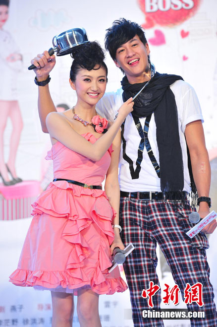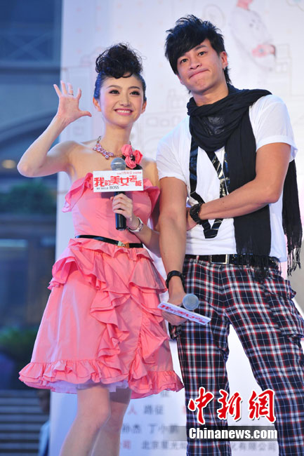 7月15日,時(shí)尚愛(ài)情喜劇電影《我的美女老板》在北京舉行了盛大發(fā)布會(huì),主演景甜、何潤(rùn)東、包小柏、吳辰君閃亮出席。景甜與何潤(rùn)東在發(fā)布會(huì)上表現(xiàn)活潑,二人不僅別出心裁地騎摩托登場(chǎng)大秀甜蜜,還現(xiàn)場(chǎng)上演吻戲、搞笑十連拍,甚至帶上拳擊手套“拳腳相加”。中新社記者 李學(xué)仕 攝