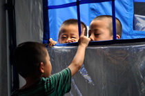 8月12日,甘肅舟曲災(zāi)區(qū)受災(zāi)群眾安置點(diǎn)內(nèi)的孩子們。甘肅舟曲特大山洪泥石流災(zāi)害發(fā)生后的第5天,隨著救災(zāi)物資持續(xù)運(yùn)進(jìn)舟曲災(zāi)區(qū),臨時(shí)安置點(diǎn)的生活條件也逐漸得到改善,各類設(shè)施逐漸齊全,受災(zāi)群眾在這里重啟生活。中新網(wǎng)記者 金碩 攝