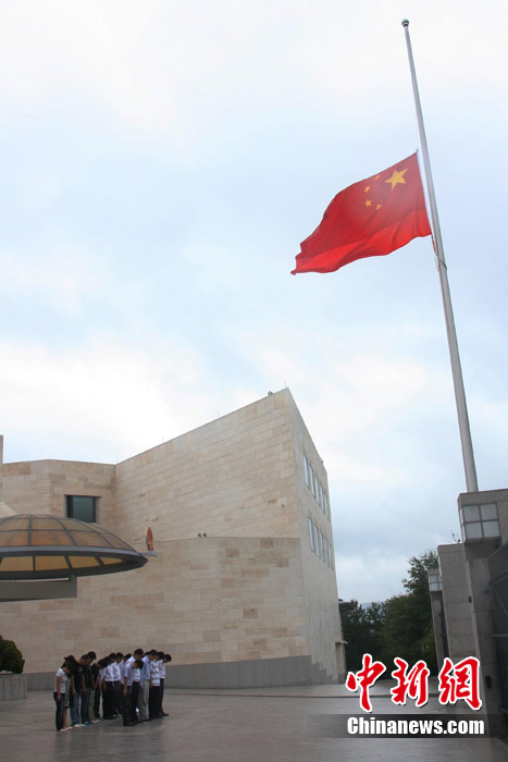 8月7日夜至8日凌晨,甘肅省甘南藏族自治州舟曲縣突發(fā)特大山洪泥石流災(zāi)害,造成重大人員傷亡。國務(wù)院決定,8月15日舉行全國哀悼活動(dòng)。圖為在四川汶川沙坪關(guān)堰塞湖便道搶通現(xiàn)場,搶險(xiǎn)人員向舟曲遇難者默哀。中新社發(fā) 任施 攝