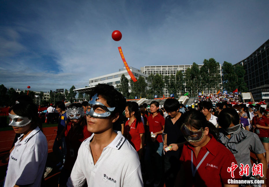 8月18日下午,深圳市富士康廠區(qū),舉行了一場(chǎng)由富士康員工自發(fā)倡議、富士康工會(huì)聯(lián)合會(huì)組織的規(guī)模空前的萬(wàn)人誓師活動(dòng),活動(dòng)的主題是“珍惜生命,關(guān)愛(ài)家人”,2萬(wàn)員工跟著一輛輛彩車歡聲笑語(yǔ),員工們說(shuō)這是他們的“狂歡節(jié)”。