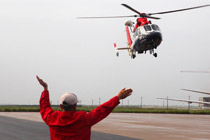 9月8日,交通運(yùn)輸部北海第一救助飛行隊(duì)救援人員駕駛直升機(jī)在傾斜的山東東營勝利油田3號鉆井平臺事故現(xiàn)場搜救。 9月7日23時,山東東營勝利油田位于渤海的作業(yè)3號鉆井平臺,因傾斜遇險(xiǎn),平臺上4人落水,32人被困平臺。中國海上搜救中心連夜救助,目前已有34人獲救,救援人員正在全力搜救2名失蹤人員。圖片來源:新華網(wǎng)