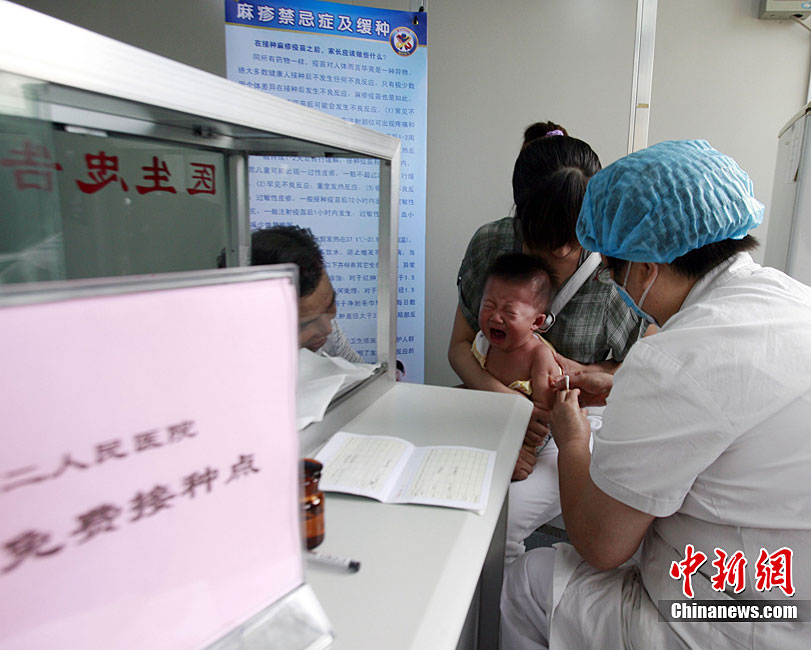 9月11日,中國史上最大規(guī)模的“麻疹強化免疫”啟動,河南省鄭州市第二人民醫(yī)院疫苗接種醫(yī)生展示由中國企業(yè)自行生產的麻疹疫苗。據中國疾控中心副主任楊維介紹,目前中國使用的麻疹疫苗,全部都是由中國企業(yè)自己來生產,據初步統計,將近一億兒童接種麻疹疫苗。中新社記者 王中舉 攝
