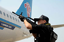 9月16日,深圳寶安國際機(jī)場舉行反恐應(yīng)急演習(xí),模擬一架客機(jī)被歹徒劫持后,特警、防爆、消防、醫(yī)療救護(hù)等各方面展開營救,在短時間內(nèi)解救人質(zhì)處理事故。中新社記者 陳文 攝