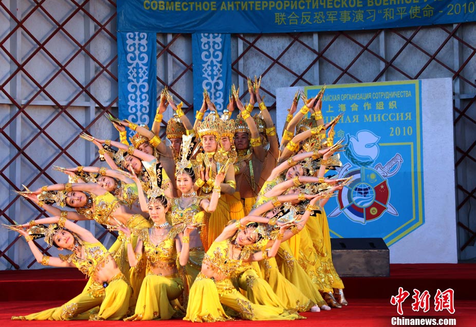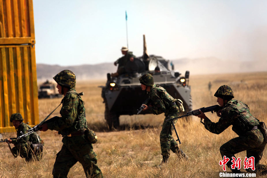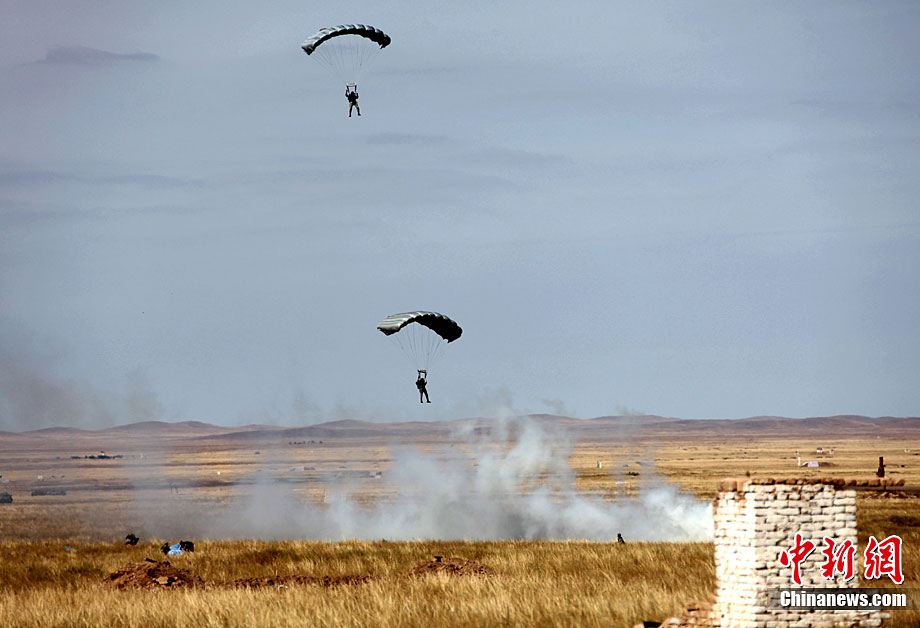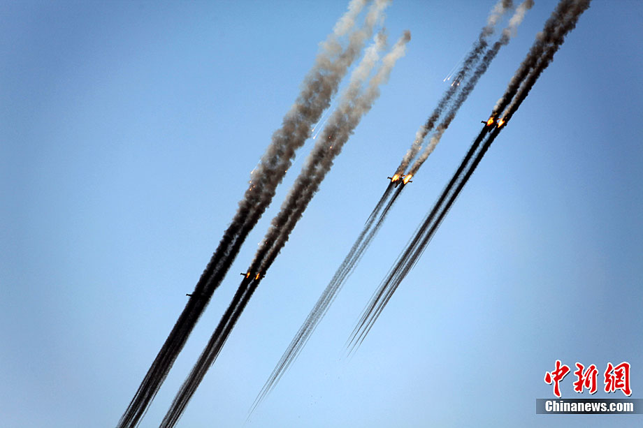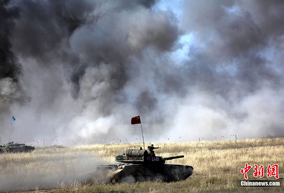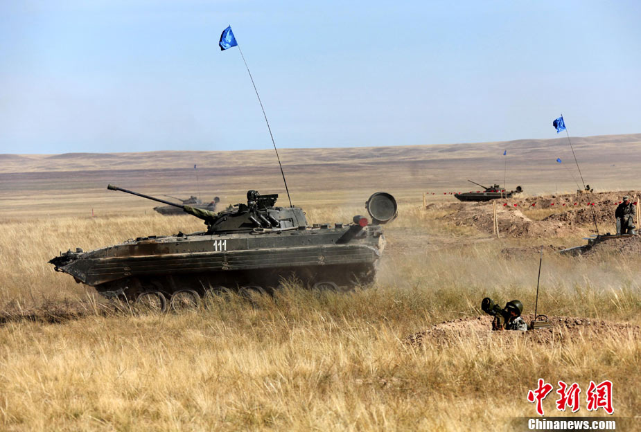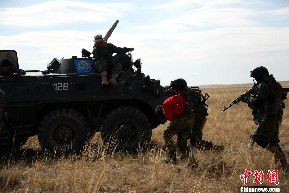 9月17日,“和平使命-2010”上海合作組織成員國武裝力量聯(lián)合反恐軍事演習,按計劃在哈薩克斯坦馬特布拉克訓練場成功進行首次實兵實彈合練,這也是本次聯(lián)演戰(zhàn)役準備階段的第三次合練。圖為參演直升機從演習地域上空輪番實施打擊。中新社發(fā) 孫自法 攝
