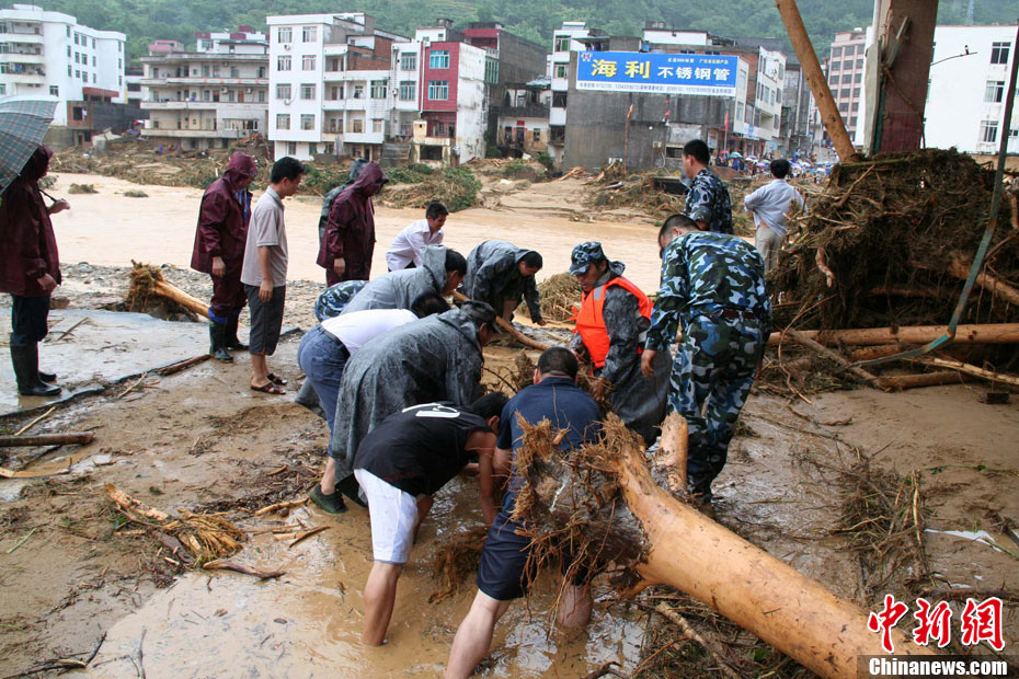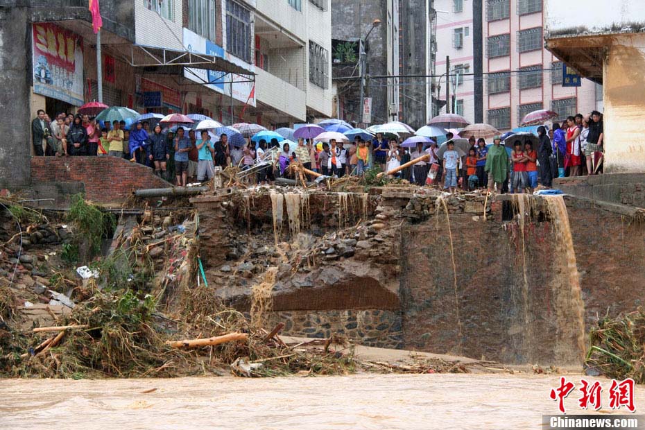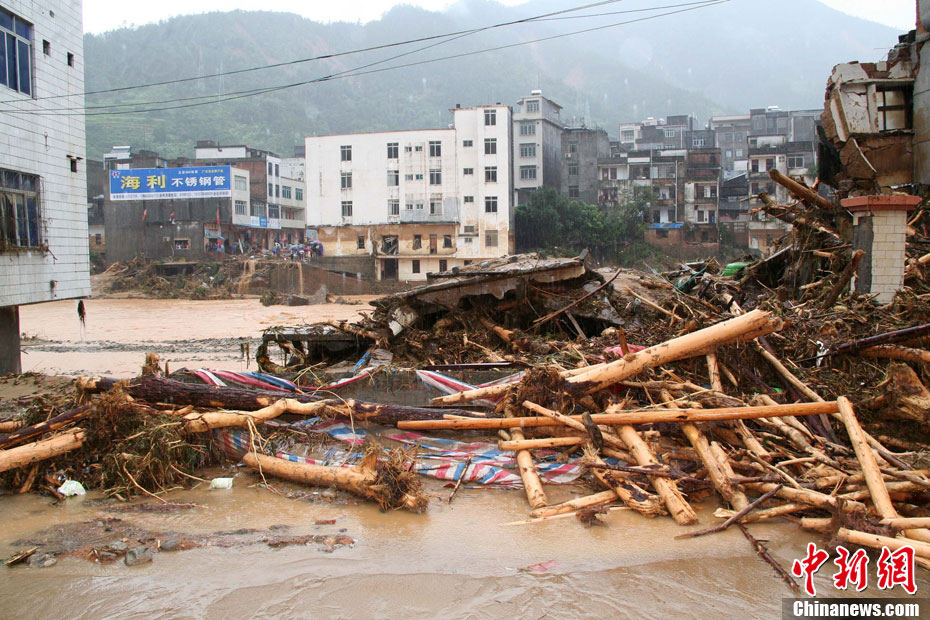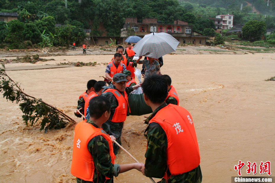 9月23日晚,廣東茂名市三防部門(mén)稱(chēng),受“9·21”特大暴雨引發(fā)山洪災(zāi)害影響,當(dāng)?shù)匾驗(yàn)?zāi)停產(chǎn)工礦企業(yè)達(dá)176家,其中以水電站為主,還包括木業(yè)加工廠、選礦廠等。圖為災(zāi)害現(xiàn)場(chǎng)。中新社記者 梁盛 攝