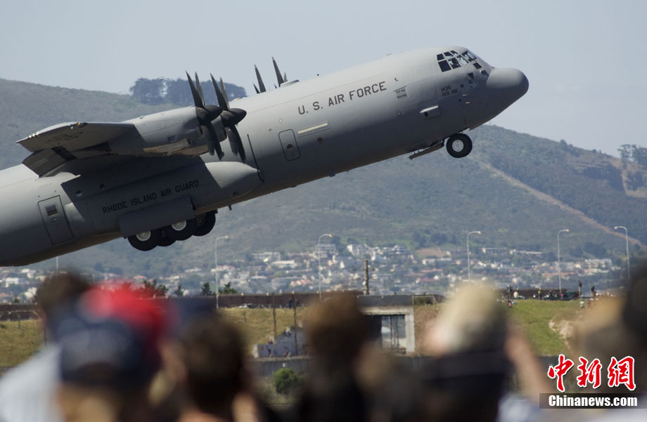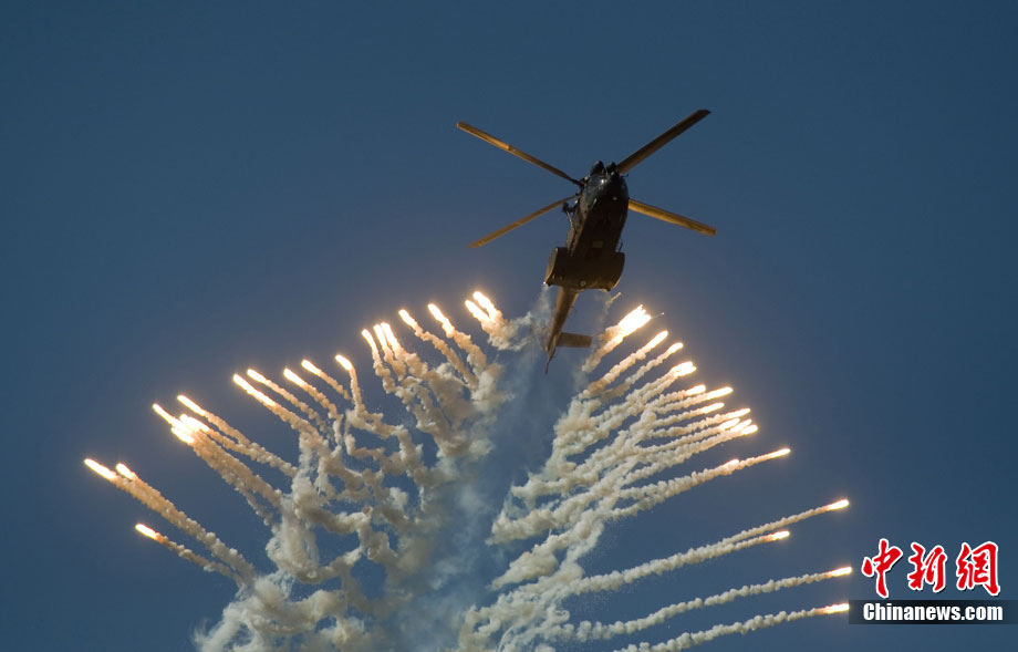 當(dāng)?shù)貢r(shí)間9月24日,南非開(kāi)普敦Ysterplaat空軍基地舉行了非洲最大的航空裝備和武器展覽會(huì)。來(lái)自世界各地的軍火商攜帶軍事裝備參展。圖為南非空軍武裝直升機(jī)在進(jìn)行飛行表演。