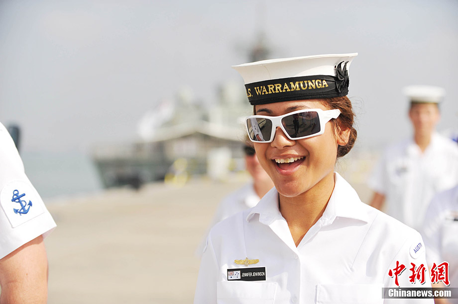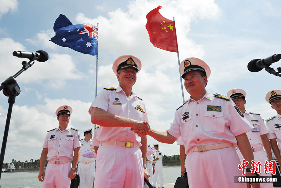 9月26日,應(yīng)中國(guó)人民解放軍海軍邀請(qǐng),澳大利亞海軍艦隊(duì)司令吉爾摩少將率海軍“瓦拉蒙加”號(hào)護(hù)衛(wèi)艦抵達(dá)湛江某軍港進(jìn)行友好訪問(wèn),南海艦隊(duì)舉行了隆重的歡迎儀式。中新社記者 陳文 攝