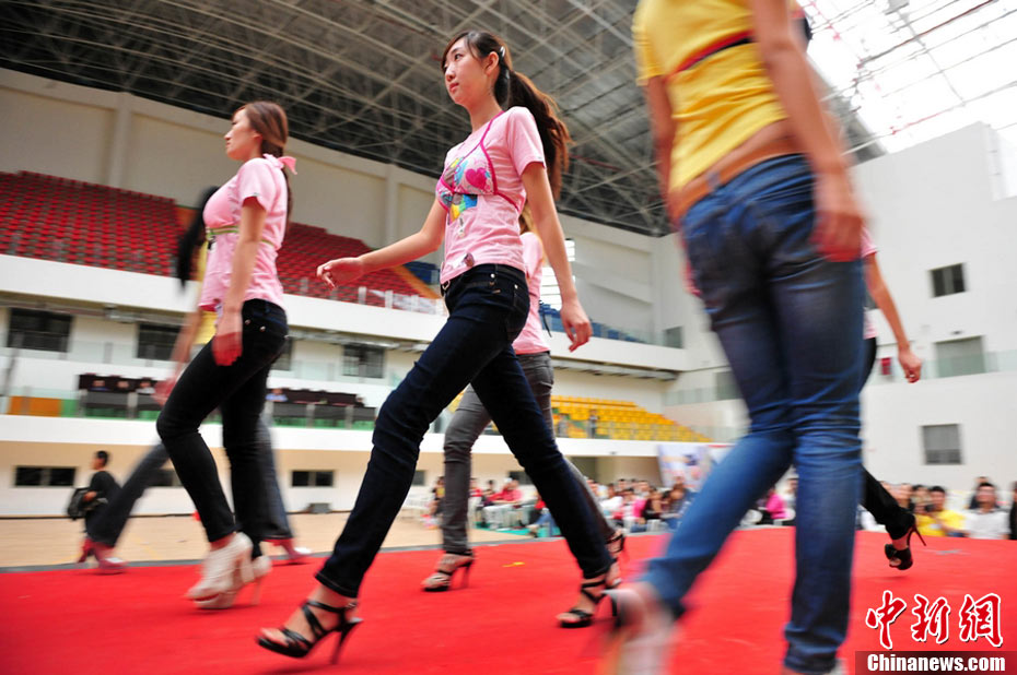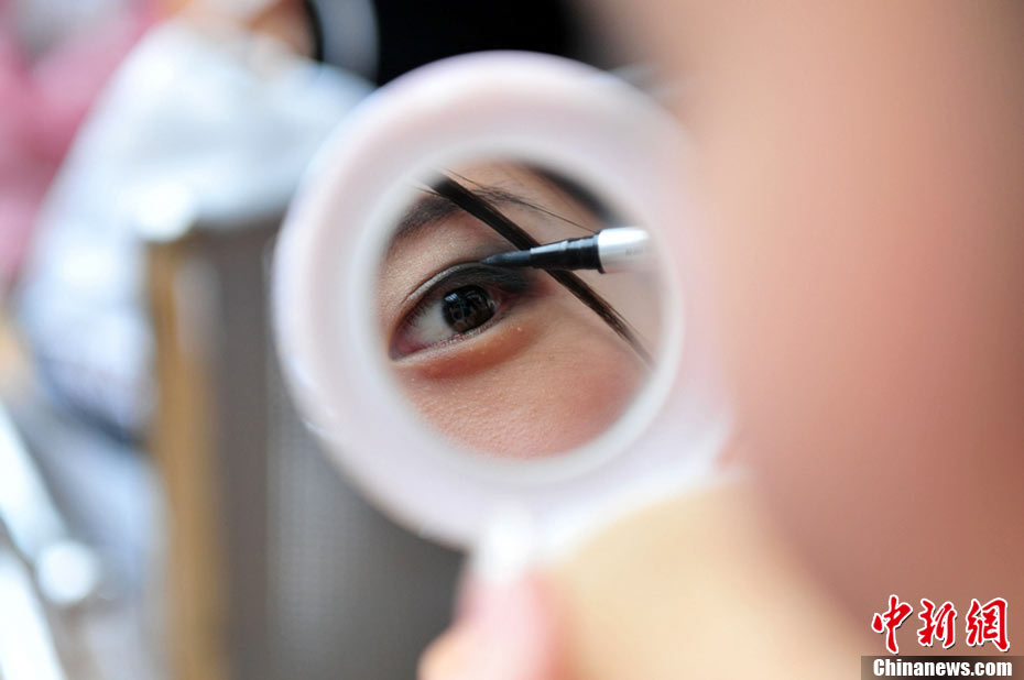 9月25日,40名佳麗選手云集四川省劍閣縣體育館,為即將到來的2010中華旅游小姐大賽中國區(qū)總決賽晚會(huì)進(jìn)行彩排。為了一個(gè)小時(shí)的時(shí)尚秀,選手們需要參加兩天共10幾個(gè)小時(shí)的高強(qiáng)度彩排,大部分的時(shí)間她們在“模指”的指導(dǎo)下站立、走臺(tái)、或者是緊張的換衣。然而,猶如T臺(tái)上的絢麗一樣,她們的后臺(tái)同樣精彩。中新社記者 李學(xué)仕 攝
