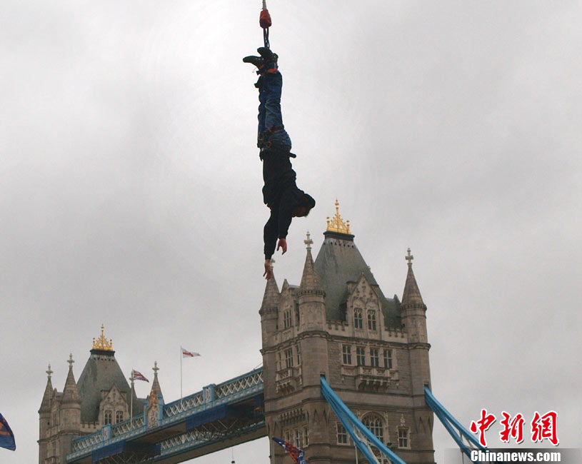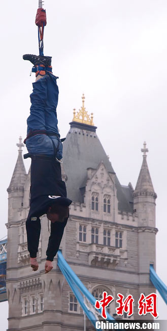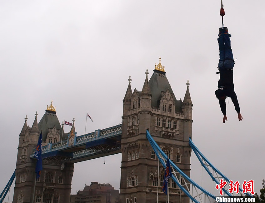 9月26日,英國倫敦,一位名叫James Field的男子在一個小時內(nèi)完成了42次蹦極跳,打破世界紀錄。