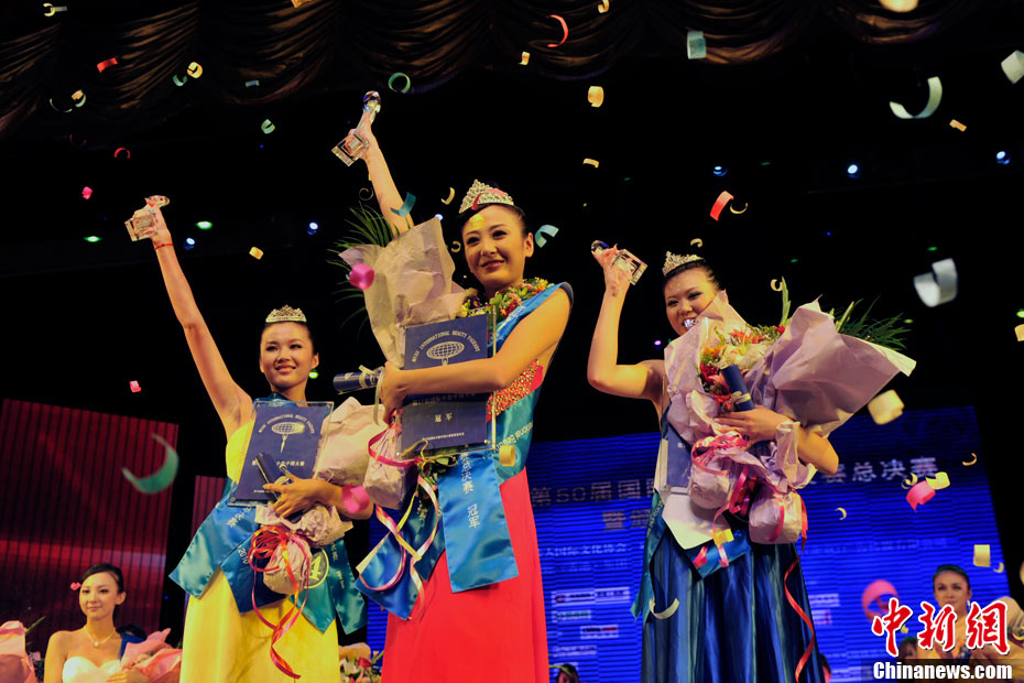 9月26日晚,第50屆國(guó)際小姐中國(guó)大賽總決賽暨頒獎(jiǎng)晚會(huì)在北京之夜香艷落幕。43名佳麗通過(guò)旗袍、個(gè)性服飾、泳裝和晚禮服的展示,動(dòng)聽(tīng)的歌聲和優(yōu)美的舞蹈為眾人獻(xiàn)上了一場(chǎng)精彩的視覺(jué)盛宴。經(jīng)過(guò)激烈的角逐和比拼,來(lái)自湖北的41號(hào)佳麗袁思怡奪得冠軍,榮膺“中國(guó)小姐”稱號(hào)。34號(hào)武靜羽和44號(hào)魏嘉寶分獲亞軍和季軍。中新網(wǎng)記者 金碩 攝