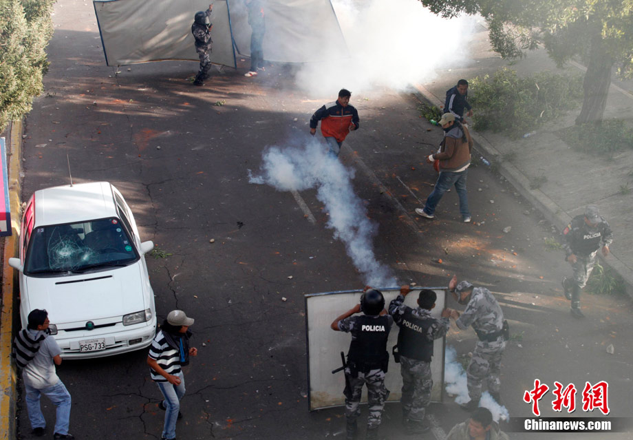 厄瓜多爾當(dāng)?shù)貢r(shí)間9月30日爆發(fā)嚴(yán)重騷亂,目前,厄瓜多爾局勢(shì)十分緊張,抗議者一度控制首都基多的國際機(jī)場(chǎng),并試圖攻占國會(huì)大廈。在厄瓜多爾的其他地方也出現(xiàn)嚴(yán)重騷亂,多個(gè)城市間的交通被切斷。圖為在厄瓜多爾首都基多街頭,一名警官參加示威游行。