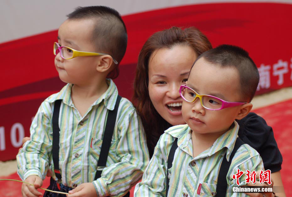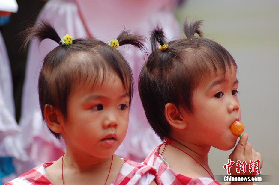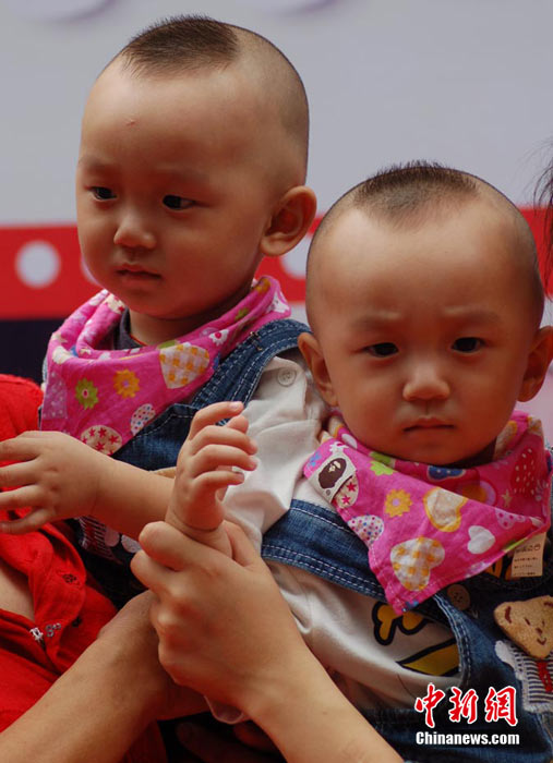 10月1日,國慶長假第一日,70多對雙胞胎、三胞胎歡聚廣西南寧市人民公園,參加“南寧首屆雙胞胎歡樂節(jié)”,比拼相似度與默契程度。參加活動(dòng)的雙胞胎有長得酷似李宇春、周迅、大小S等明星,引來眾多好奇目光。中新社記者 劉萬強(qiáng) 攝