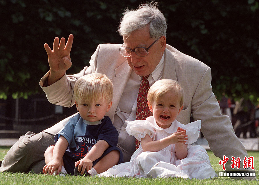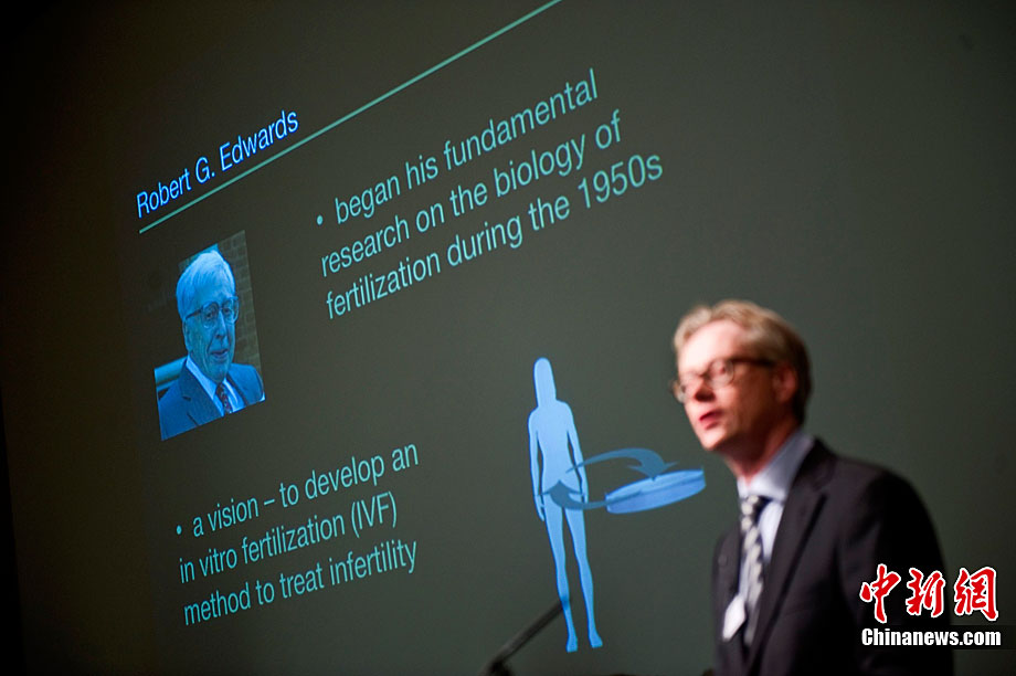被譽為“試管嬰兒之父”的英國科學(xué)家羅伯特·愛德華茲10月4日獲得諾貝爾生理學(xué)或醫(yī)學(xué)獎,他因身體欠佳未對獲獎消息發(fā)表感言。圖為2008年7月12日,愛德華茲(左)與世界第一個試管嬰兒路易斯(右)和她的兒子、母親合影。