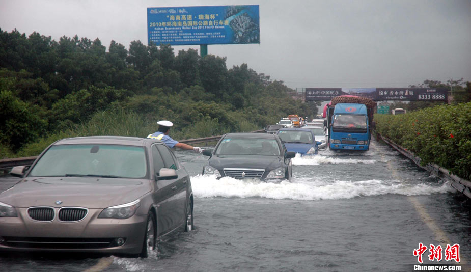 10月6日消息,海南從9月30日開始的強(qiáng)降雨仍在持續(xù)。海南省氣象臺(tái)再次將暴雨二級(jí)應(yīng)急響應(yīng)提升為一級(jí),提請(qǐng)各沿海港口迅速做好漁船回港避風(fēng)工作。圖為汽車在海南瓊海市涉水路段經(jīng)過。 中新社發(fā) 蒙鐘德 攝 圖片來源:cnsphoto