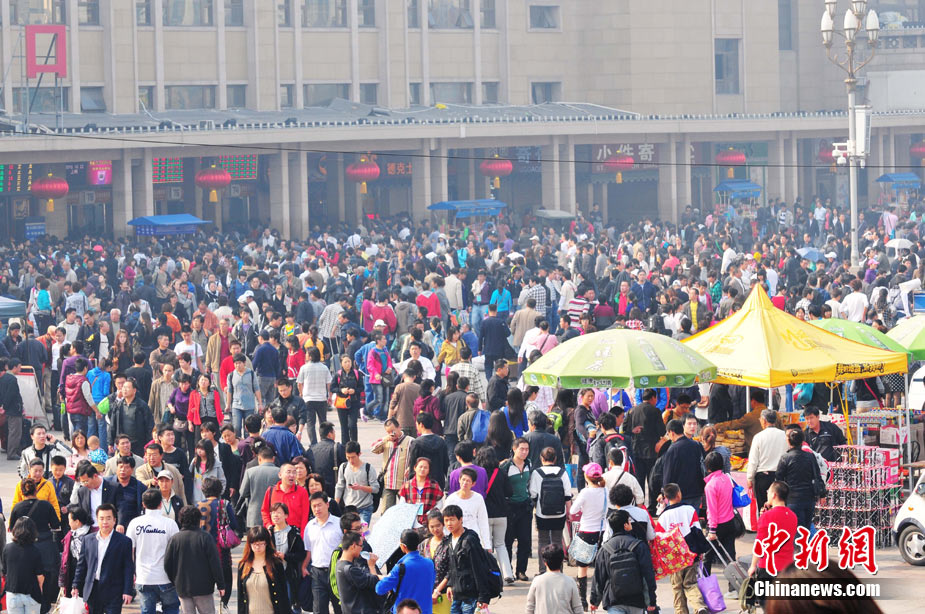 2010年10月6日,國慶“十一”黃金周長假即將結(jié)束,北京站、北京西站迎來返程客流高峰。樊甲山 攝 圖片來源:CFP視覺中國