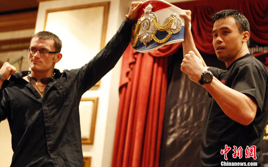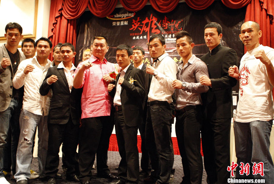 10月7日,“英雄傳說(shuō)-決戰(zhàn)云頂”世界搏擊王者爭(zhēng)霸賽在馬來(lái)西亞吉隆坡舉行賽前發(fā)布會(huì),是次賽事是目前在馬來(lái)西亞規(guī)模最大,規(guī)格最高的職業(yè)搏擊比賽,比賽除了五位泰拳選手和五位中國(guó)選手參加之外,還有來(lái)自日本、美國(guó)以及馬來(lái)西亞共16位拳手參賽。賽事由來(lái)自美國(guó)、日本、菲律賓以及中國(guó)的國(guó)際組織WBC、WCK、K-1的國(guó)際職業(yè)裁判擔(dān)任。10月9日該賽將通過(guò)衛(wèi)星全球直播,中國(guó)亦將有多家電視臺(tái)實(shí)況錄/轉(zhuǎn)播。圖為各國(guó)拳手亮相“英雄傳說(shuō)-決戰(zhàn)云頂”世界搏擊王者爭(zhēng)霸賽賽前發(fā)布會(huì)。 中新社記者 錢興強(qiáng) 攝