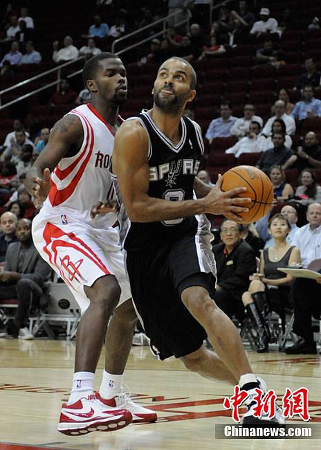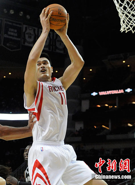 10月7日,美國休斯敦,10/11NBA季前賽,休斯敦火箭90-87圣安東尼奧馬刺。姚明上場12分48秒,8投2中得5分7個(gè)籃板,并有3次出色的蓋帽。