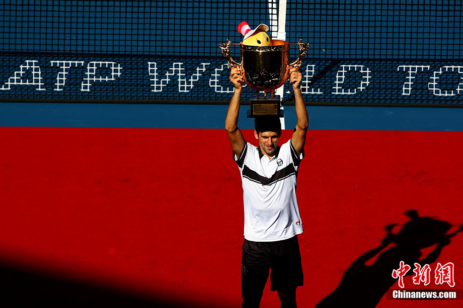 10月11日,中國(guó)網(wǎng)球公開賽決出了男單冠軍的歸屬。在這場(chǎng)因雨持續(xù)了兩天的比賽中,衛(wèi)冕冠軍兼頭號(hào)種子德約科維奇以6-2/6-4完勝費(fèi)雷爾,成功衛(wèi)冕2010中網(wǎng)男單桂冠。中新社記者 富田 攝