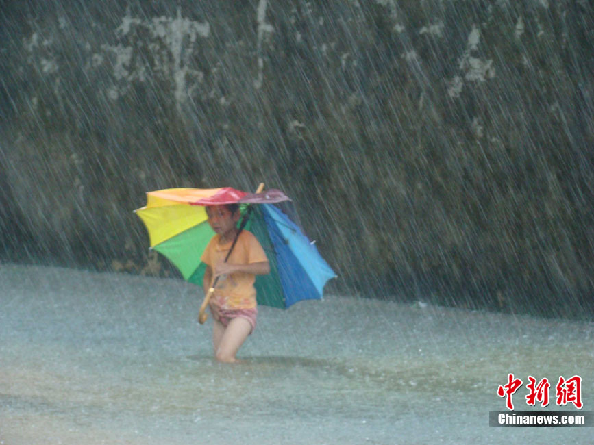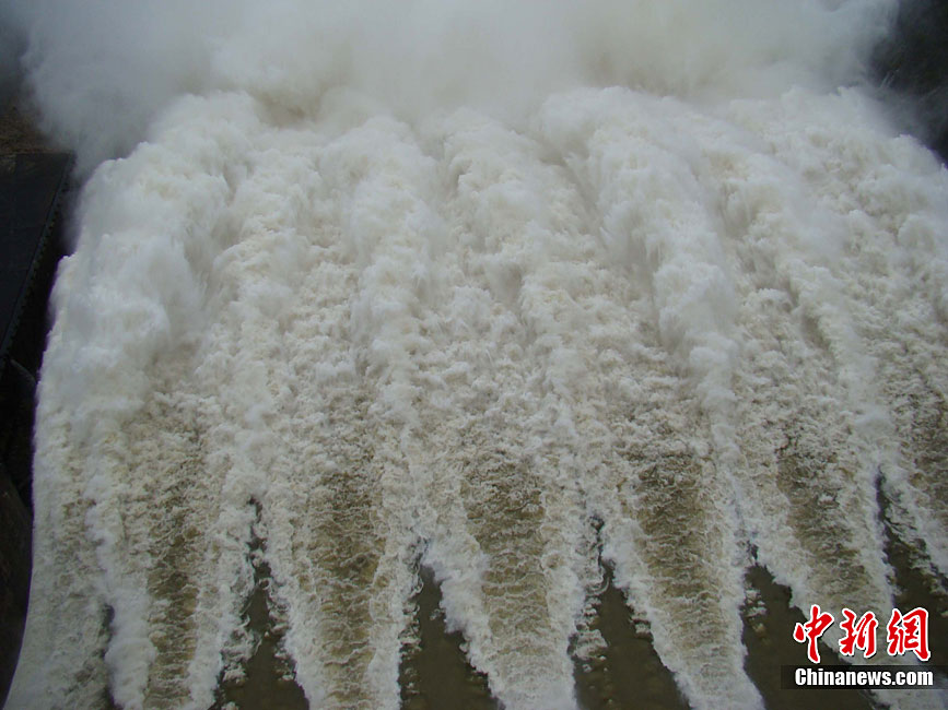 10月16日9時,受持續(xù)強降雨影響,瓊海市牛路嶺水庫最高水位達105.16米,超過防洪限制水位105米,牛路嶺水庫水電站打開7個閘門,以每秒3000立方米流量泄洪到萬泉河。當日上午,瓊海市政府緊急將萬泉河沿岸7鄉(xiāng)鎮(zhèn)群眾緊急轉(zhuǎn)移。中新社發(fā) 付美斌 攝