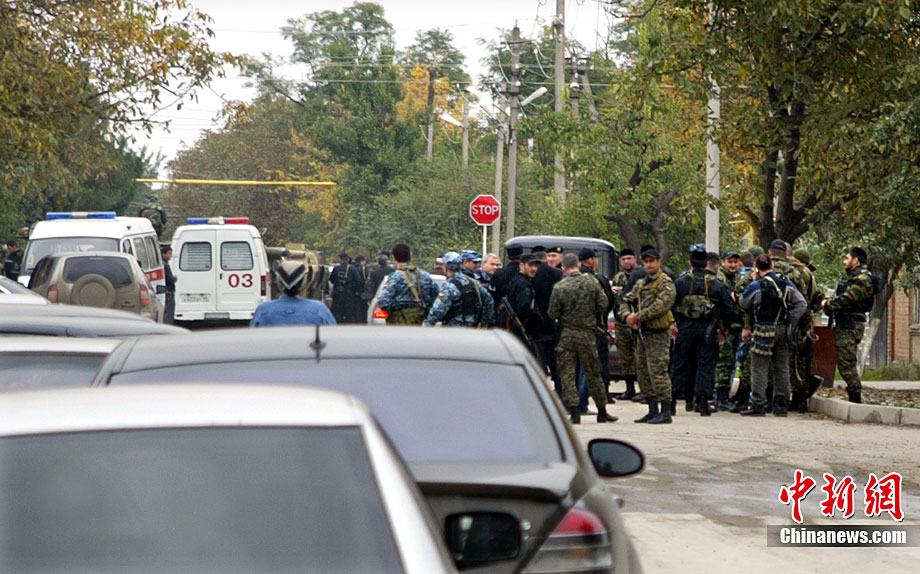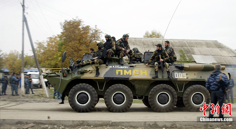 當(dāng)?shù)貢r(shí)間10月19日,俄羅斯車臣共和國(guó)首府格羅茲尼市列寧區(qū)的車臣議會(huì)大樓遭到武裝分子襲擊,造成2人死亡。圖為安全部隊(duì)在消滅完襲擊份子后,準(zhǔn)備撤離議會(huì)大樓。
