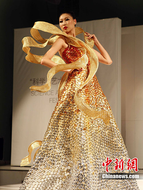 10月19日,北京服裝學院第六屆“科學·藝術(shù)·時尚”節(jié)開幕。此次活動將以往的“科學·藝術(shù)·服裝”正式更名為“科學·藝術(shù)·時尚”,融入了更多的時尚色彩,是歷屆活動中最豐富的一次。其中包括展示中、日、韓傳統(tǒng)服飾展和技藝交流;朝鮮時代韓服的美與流行;拼布藝術(shù)展;學生創(chuàng)意一條街等,全面體現(xiàn)了該校藝工融合的特色。圖為華彩意象—方·圓·盛時尚服裝秀展示最新潮流。中新社記者 任海霞 攝