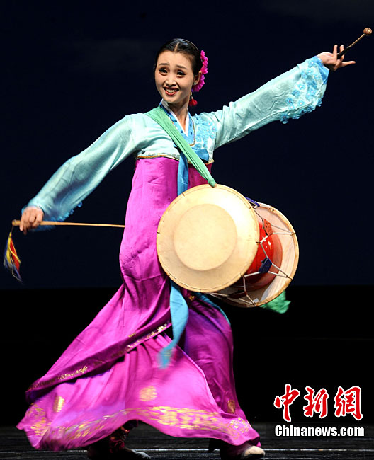 10月22日晚,朝鮮平壤藝術(shù)團(tuán)在國家大劇院進(jìn)行彩排。10月23至24日,朝鮮平壤藝術(shù)團(tuán)將在北京國家大劇院歌劇院上演歌舞晚會(huì)《怒放的金達(dá)萊》。此次來訪的朝鮮平壤藝術(shù)團(tuán),是朝鮮政府專門為參加上海世博會(huì)朝鮮館日組建的表演團(tuán)體,該團(tuán)成員來自朝鮮最重要的三大藝術(shù)團(tuán)體:萬壽臺(tái)藝術(shù)團(tuán)、血海藝術(shù)團(tuán)和朝鮮民族國立藝術(shù)團(tuán),參演人員薈萃了朝鮮最優(yōu)秀的藝術(shù)家。演員們將身著獨(dú)具特色的民族服飾,表演《長鼓舞》、《拾貝姑娘》、《鈴鐺舞》、《三人舞》等傳統(tǒng)舞蹈。中新社記者 劉震 攝