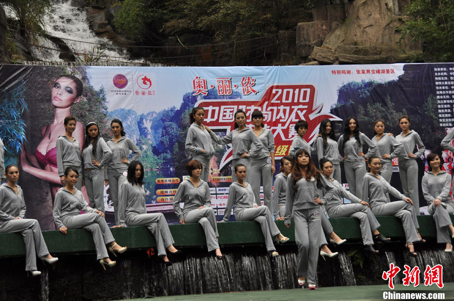 “2010中國時尚內衣模特大賽”晉級賽10月28日下午在世界自然遺地產(chǎn)地——張家界武陵源寶峰湖風景區(qū)開賽。來自北京、上海等地的72名內衣佳麗一展身姿,爭奪前30名決賽資格。11月5日,“奧麗儂杯·2010中國時尚內衣模特決賽暨頒獎盛典”將在張家界魅力湘西國際文化廣場火熱上演。吳勇兵 唐純禮攝