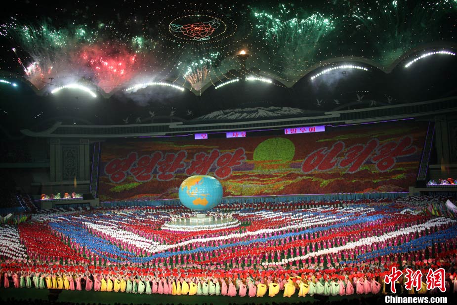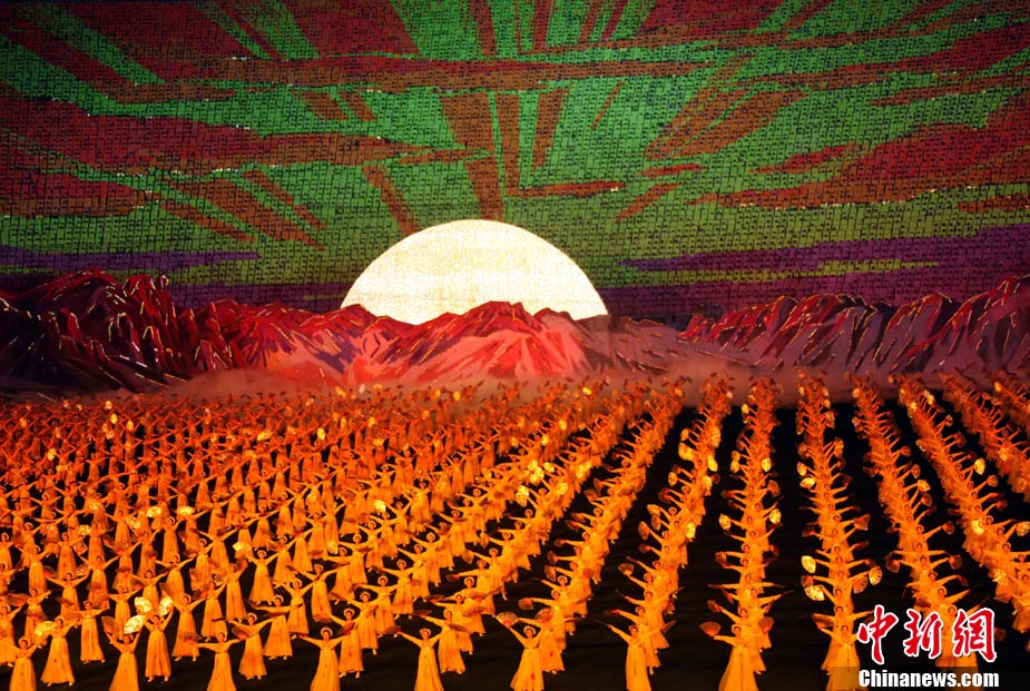 平壤精彩上演大型團(tuán)體操《阿里郎》