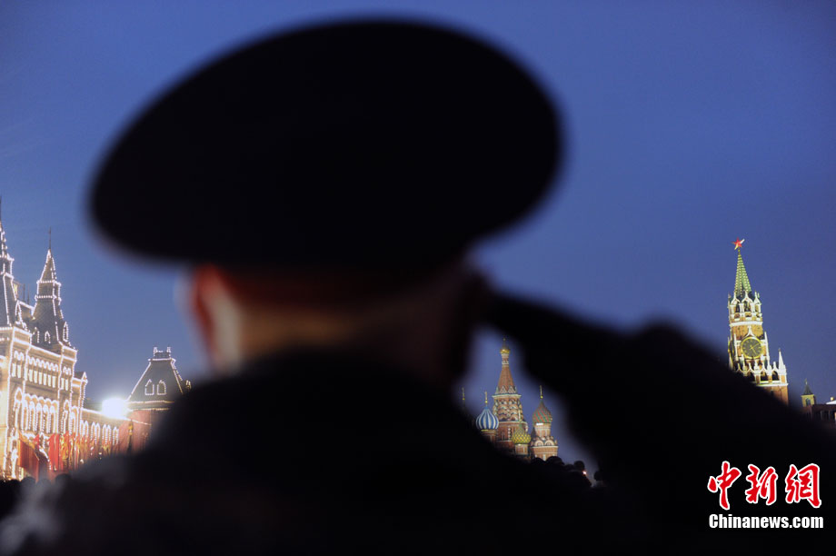 11月3日,準(zhǔn)備參加紅場(chǎng)閱兵的士兵在俄羅斯首都莫斯科進(jìn)行彩排。11月7日俄羅斯將在莫斯科紅場(chǎng)舉行盛大閱兵儀式,紀(jì)念1941年11月7日的紅場(chǎng)閱兵69周年。