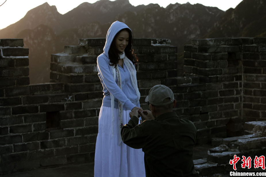 由華誼兄弟出品,馮小剛導(dǎo)演,王朔、馮小剛聯(lián)合編劇的《非誠勿擾2》將于12月22日上映。馮氏賀歲電影時隔兩年卷土重來,幽默情調(diào)不變,浪漫情懷升溫。近日,華誼兄弟發(fā)布了秦奮向梁笑笑求婚的劇照。長城上夕陽下,葛優(yōu)單膝跪地手舉鉆戒,舒淇笑臉相迎,在《非誠勿擾2》中上演了一場最浪漫的求婚。據(jù)悉,為了完成這場求婚戲,全劇組連續(xù)拍攝兩天才達到馮小剛導(dǎo)演的要求。 中新社發(fā) fcwr 攝