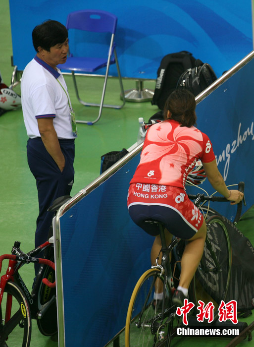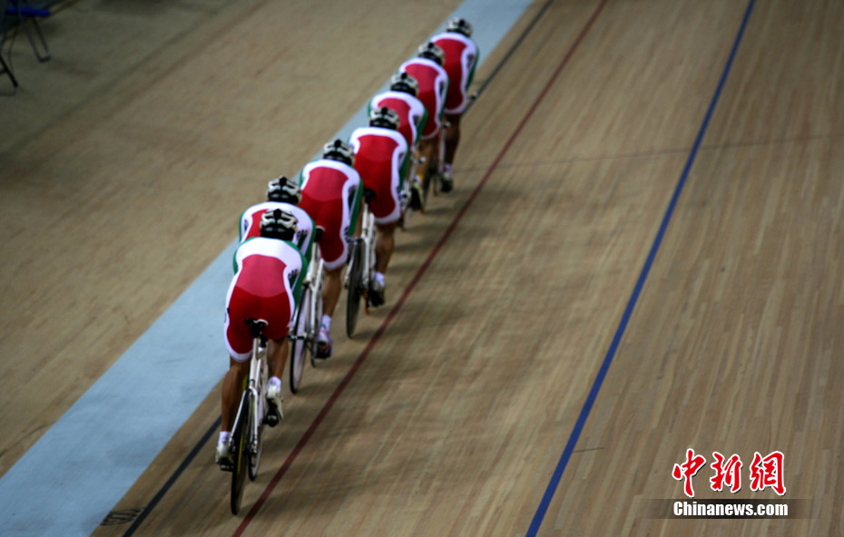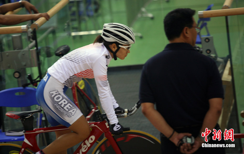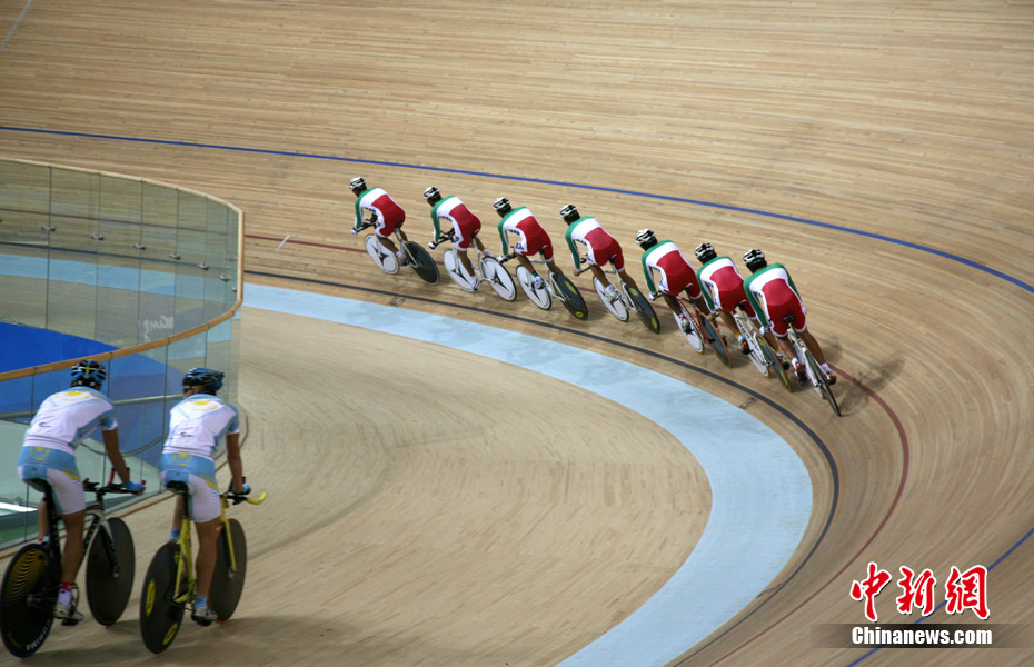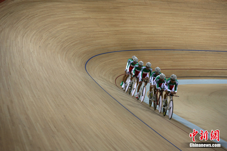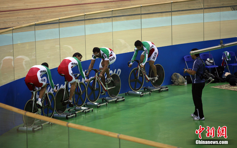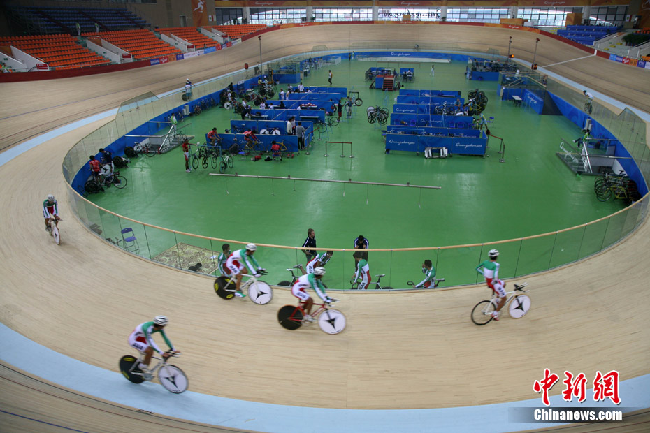 11月11日,廣州自行車輪滑極限運(yùn)動中心內(nèi),來自伊朗、韓國、中國香港等國家和地區(qū)的自行車運(yùn)動員進(jìn)行賽前場地適應(yīng)訓(xùn)練。中新社記者 張茵 攝