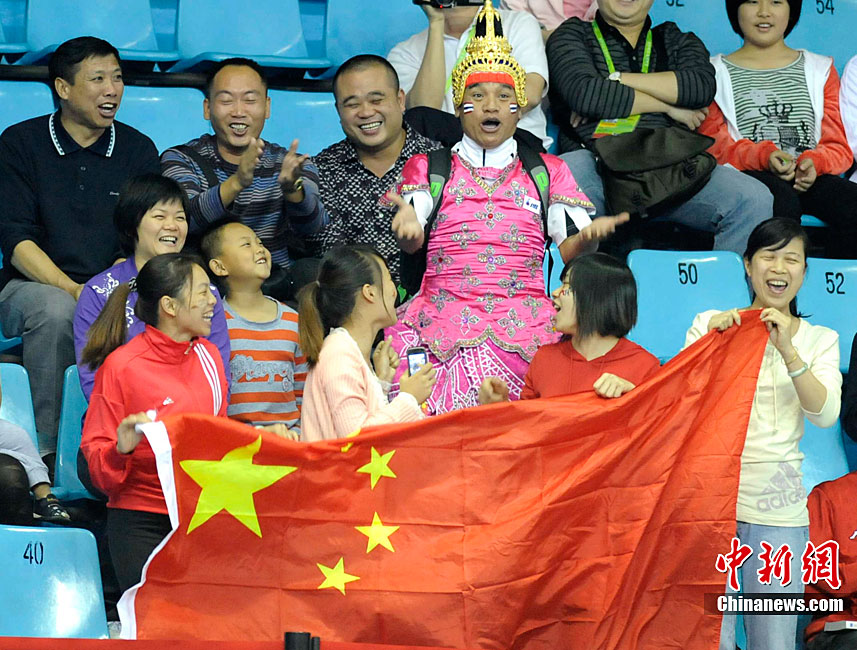 11月13日下午5時(shí)50分左右,中國(guó)選手梁瑜潔、沈宏獲得體育舞蹈標(biāo)準(zhǔn)舞探戈的金牌,這是中國(guó)代表團(tuán)在本屆亞運(yùn)會(huì)上獲得的第9枚金牌,也是中國(guó)亞運(yùn)會(huì)史上第1000塊金牌。中新社記者 張茵 攝