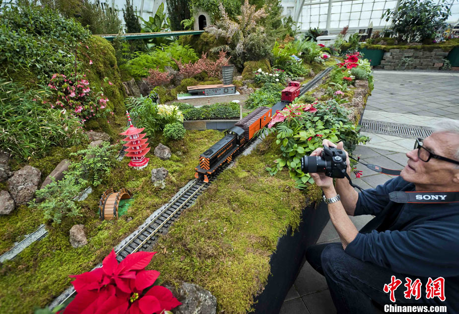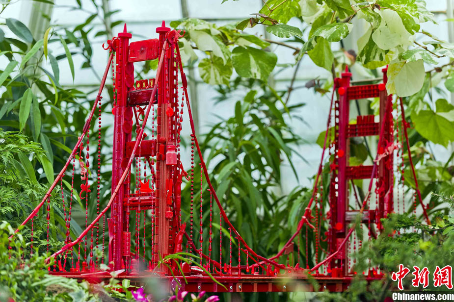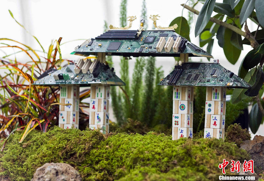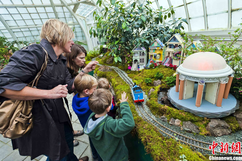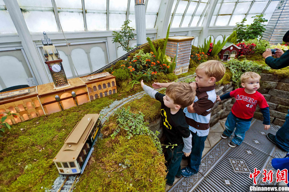 當(dāng)?shù)貢r間11月19日,美國舊金山金門公園展出藝術(shù)家以廢舊物品制成的袖珍版城市地標(biāo),作為公園140周年紀(jì)念的特別禮物,以環(huán)保節(jié)能主題再現(xiàn)這座城市的獨(dú)特魅力。圖為兒童對好奇觀看用舊刀叉、牙簽、酒瓶塞、刮刀等搭建的舊金山輪渡大廈。中新社發(fā) 陳鋼 攝