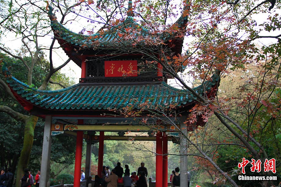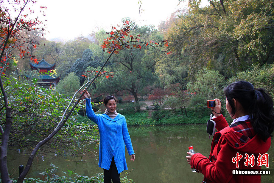 由于長沙近期氣溫偏高,致使今年岳麓山上的楓葉紅得“姍姍來遲”,但仍有大批游客慕名前來觀賞,并在最佳觀賞點愛晚亭前留影。據(jù)了解,12月2日—25日,岳麓山將舉辦第六屆紅楓文化節(jié),在愛晚亭舉辦紅楓攝影比賽、萬人大相親、市民時裝表演和爺孫書畫展等活動。愛好攝影、書畫和時裝表演的市民均可報名參加。劉柱 攝