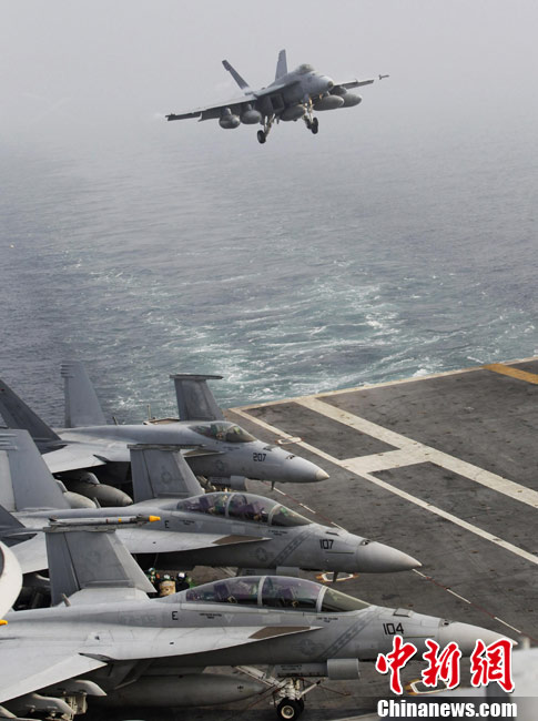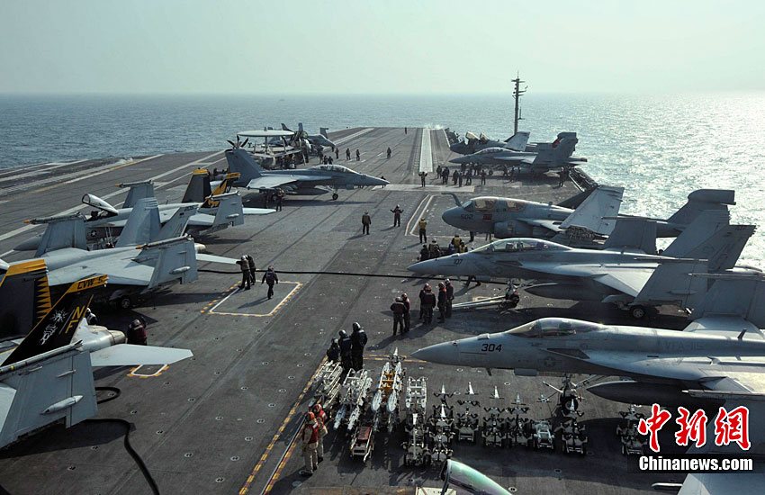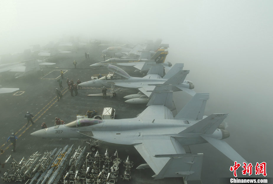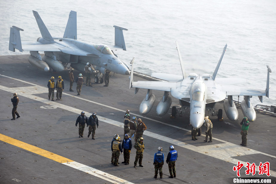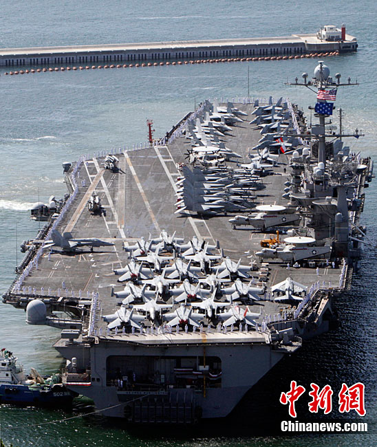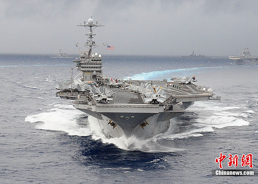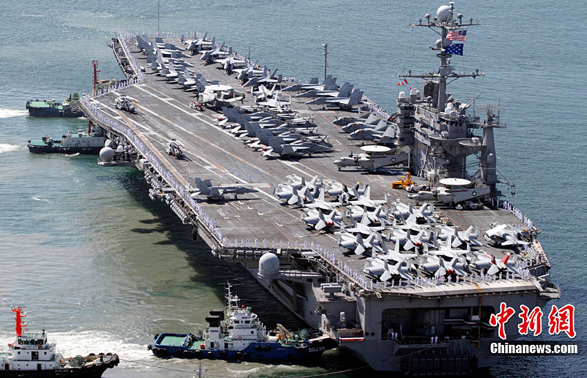 11月28日,韓美聯(lián)合軍事演習(xí)在黃海海域舉行。美軍派出“喬治·華盛頓”號(hào)航母、9600噸級(jí)巡洋艦及9750噸級(jí)驅(qū)逐艦參加演習(xí)。韓軍也投入7600噸級(jí)“世宗大王”艦、兩艘4500噸級(jí)驅(qū)逐艦以及巡邏艦、護(hù)航艦、戰(zhàn)斗支援艦和反潛飛機(jī)等參加演習(xí)。圖為11月17日,美國“喬治·華頓頓”號(hào)航母在日本沖繩附近演習(xí)。