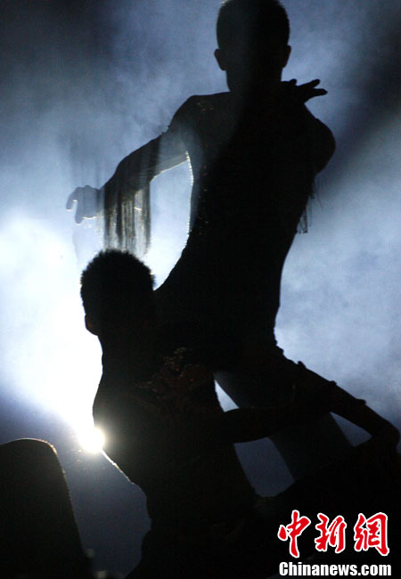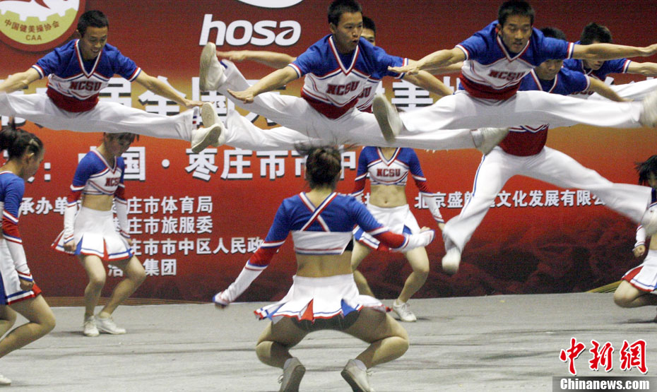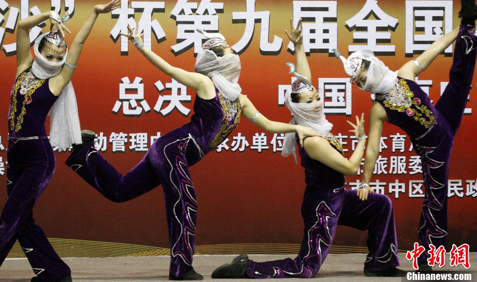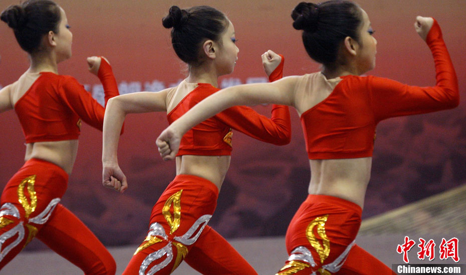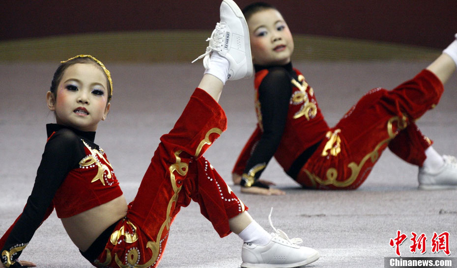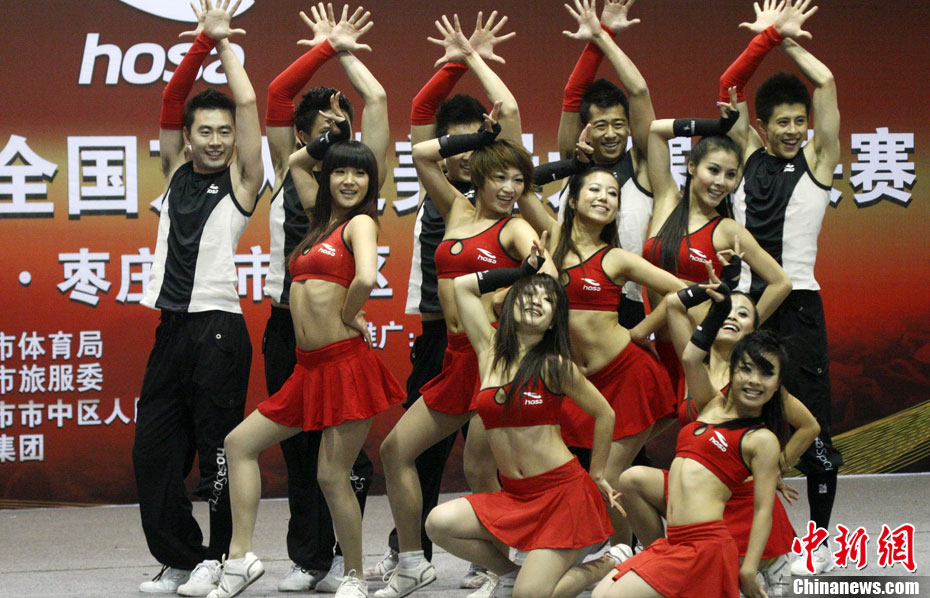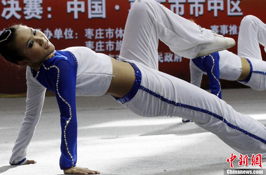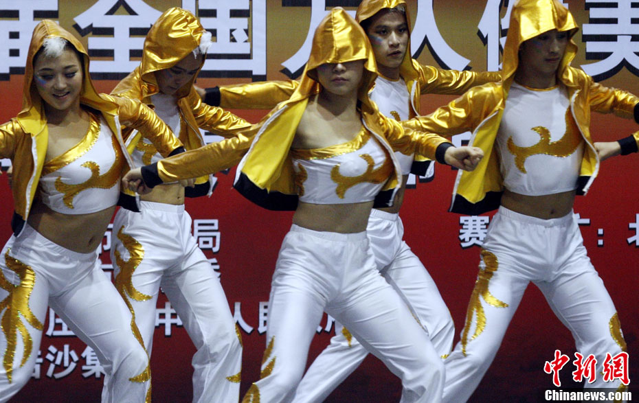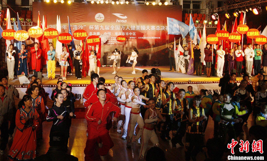 12月12日晚,正在山東棗莊市體育館舉行的2010年第9屆“浩沙杯”中國內(nèi)地萬人健美操大賽舉行總決賽舉行頒獎晚會,來自中國內(nèi)地20個賽區(qū)的194個代表隊1700余名健美操選手參賽,賽事分為少兒組、小學組、中學組、大專學院組、健身俱樂部組、職工組、中老年組、家庭組、自選動作和排舞組共10個組別。其中參賽的最小年齡選手5歲、最大年齡的70歲。圖為在頒獎晚會上獲獎的代表隊展示健美操風采。中新社記者 錢興強 攝