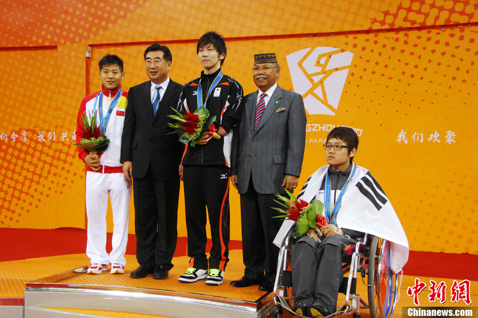 12月13日在廣州亞殘運(yùn)會舉行的首日比賽中,日本選手山田拓朗在男子400米自由泳S9級決賽中摘得金牌,這也是本屆亞殘運(yùn)會的首枚金牌。 中新社記者 梁永強(qiáng) 攝