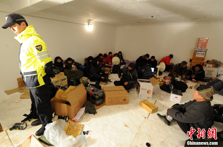 12月20日,在韓國延坪島,居民在韓國軍方實彈射擊訓(xùn)練結(jié)束后離開防空洞。韓國軍方相關(guān)負(fù)責(zé)人表示,當(dāng)?shù)貢r間12月20日下午2時30分(北京時間20日下午1時30分)左右開始的延坪島海上射擊訓(xùn)練,當(dāng)?shù)貢r間3點30分許實際上已結(jié)束。