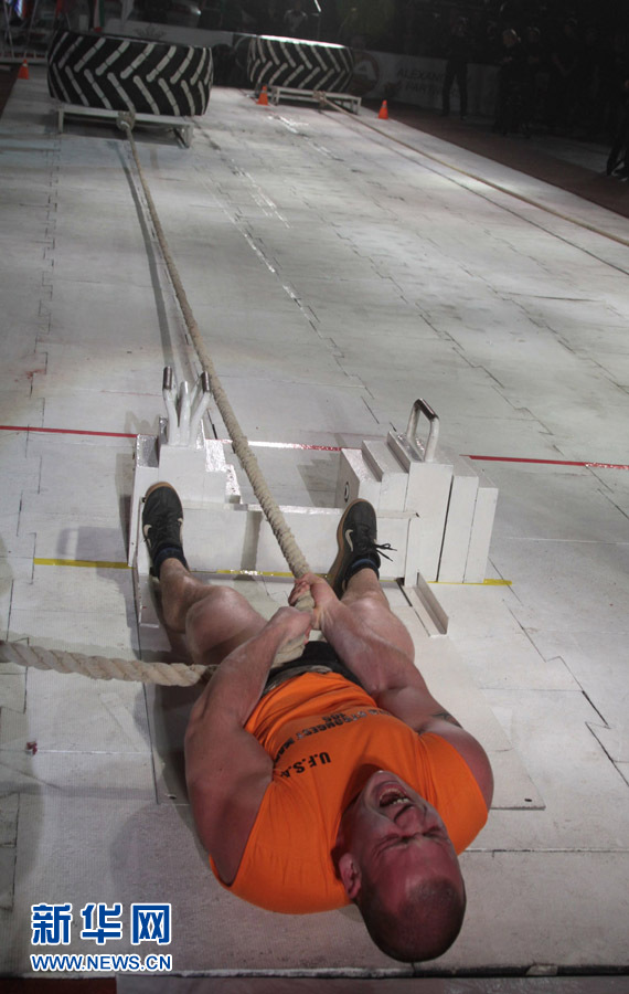 12月19日,參賽大力士在比賽中。當(dāng)日,烏克蘭首都基輔舉辦2010世界大力士比賽。該項(xiàng)比賽在體現(xiàn)選手力量的同時(shí),也融入了各國的民族風(fēng)情,很受當(dāng)?shù)赜^眾喜愛。斯塔拉斯堅(jiān)科 攝 (圖片來源:新華網(wǎng))