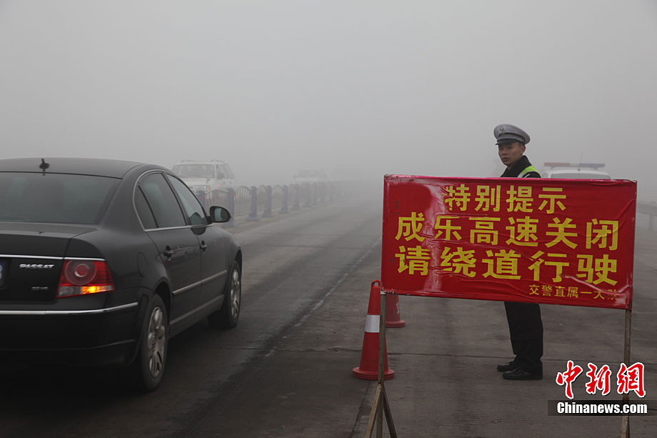 12月21日,四川眉山市遭遇大霧天氣,多數地方能見度不足30米,造成成(都)樂(山)、成(都)雅(安)高速公路全線長時間封閉和長途客車停運,給人們的出行帶來不便。堯遙 攝 圖片來源:CNSPHOTO