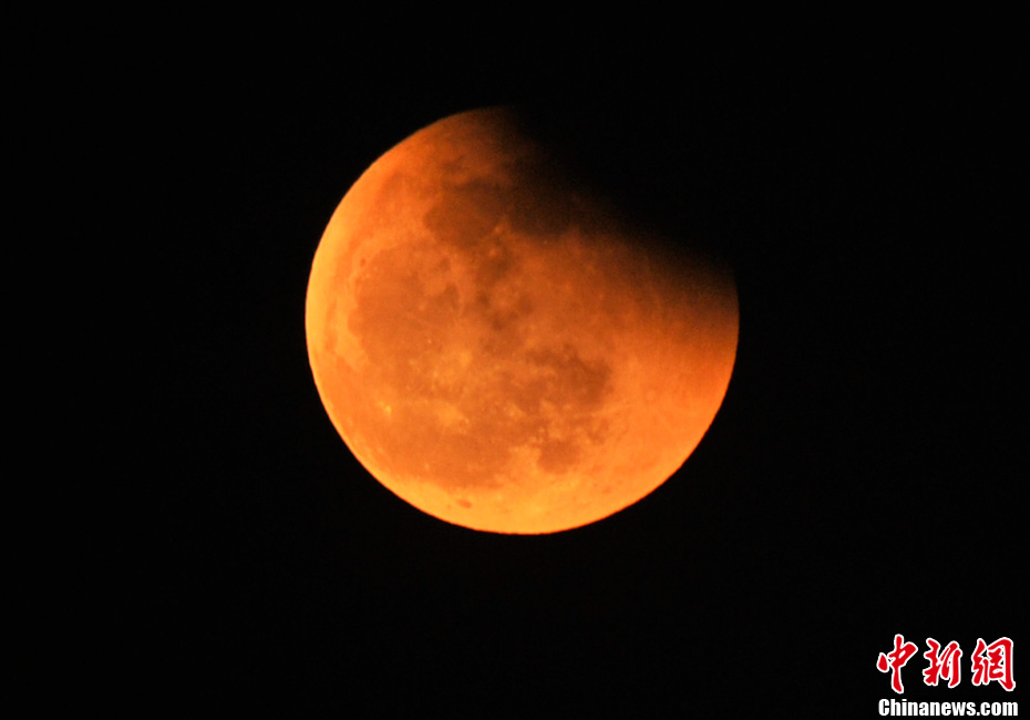 12月21日,精彩絕倫的月食天象現身天宇。月食分為半影月食、月偏食和月全食三種。月全食是地球運行到太陽與月球之間,當三者在一條直線時,地球影子將月球遮住的天文現象。圖為北京時間17:54分拍攝的月全食“復原”過程。復圓指月球與地球本影二次外切,月球離開地球本影,月偏食結束。中新社記者 金碩 攝