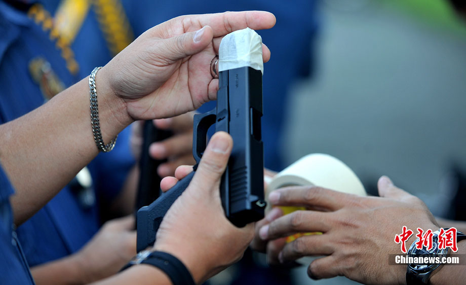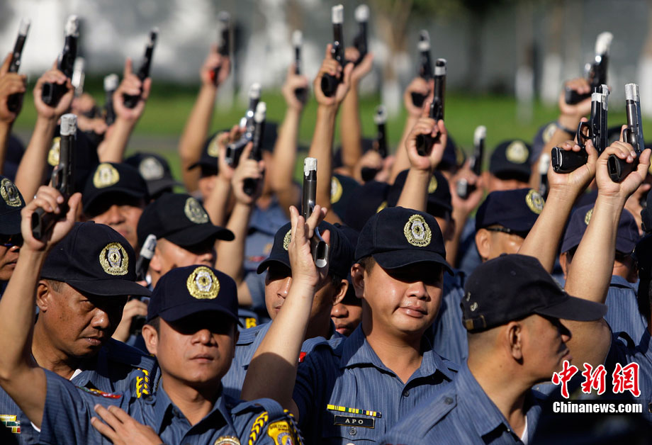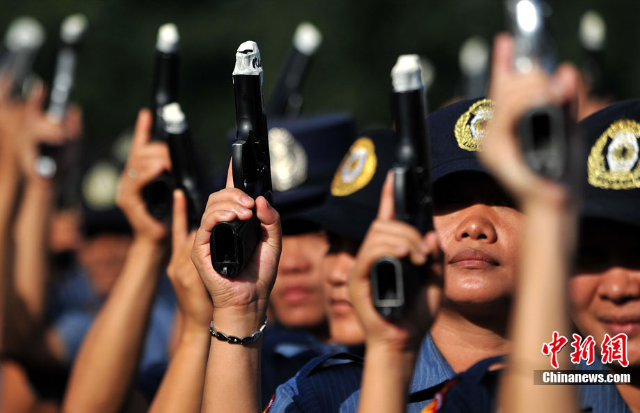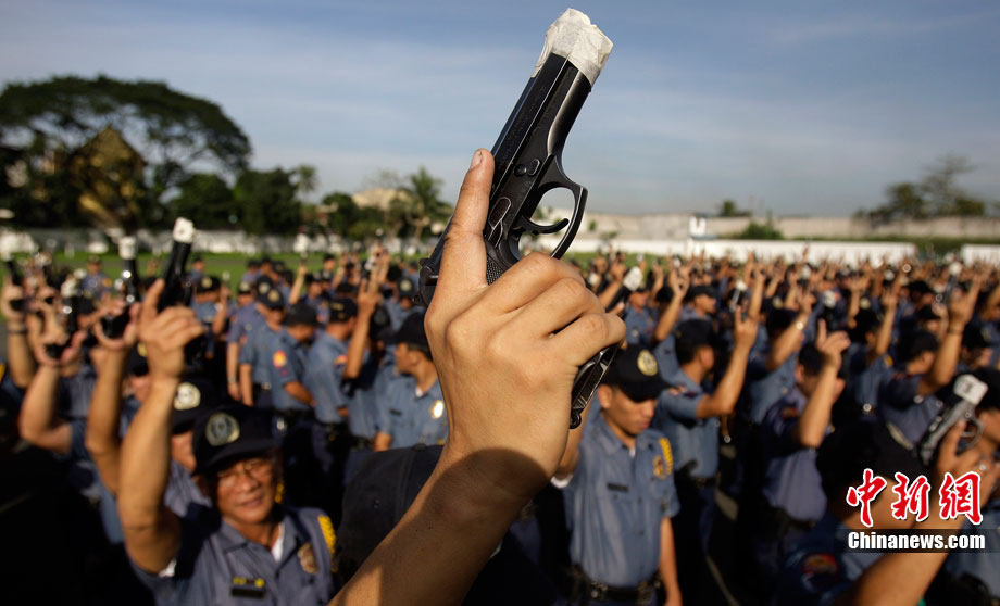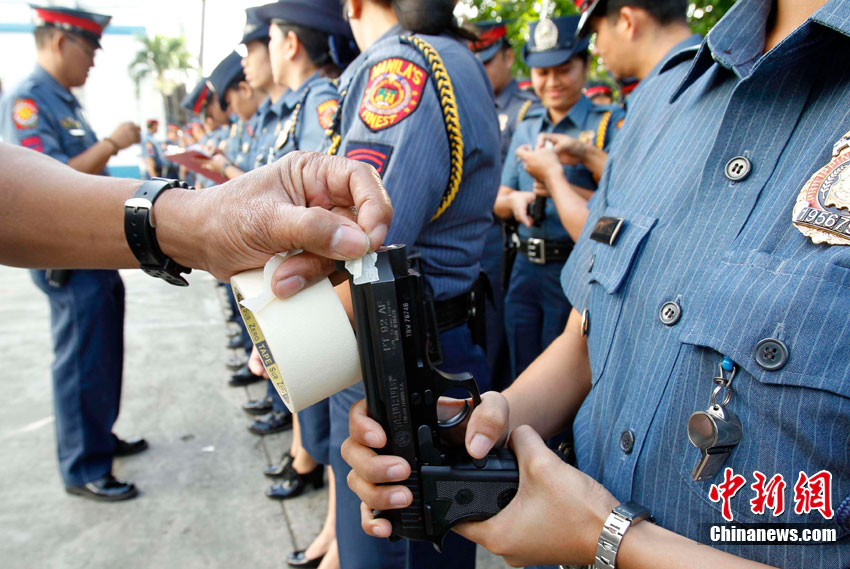 12月27日,菲律賓首都馬尼拉北部的奎松市郊區(qū),菲律賓警察正在舉行封槍儀式。菲律賓警方每年都會在新年來臨之際舉行封槍儀式,其目的是為了防止警務人員在慶祝新年時胡亂開槍。